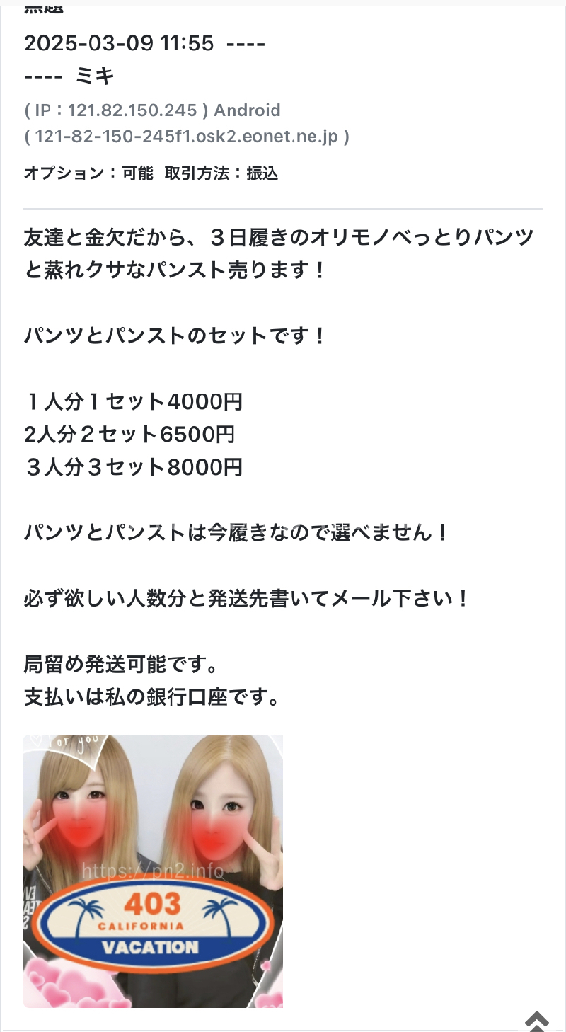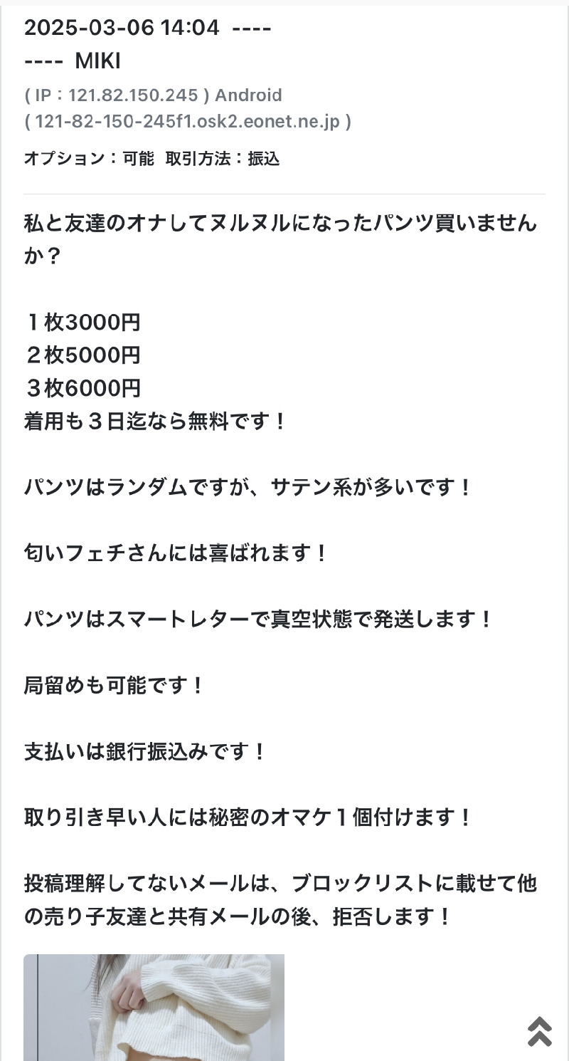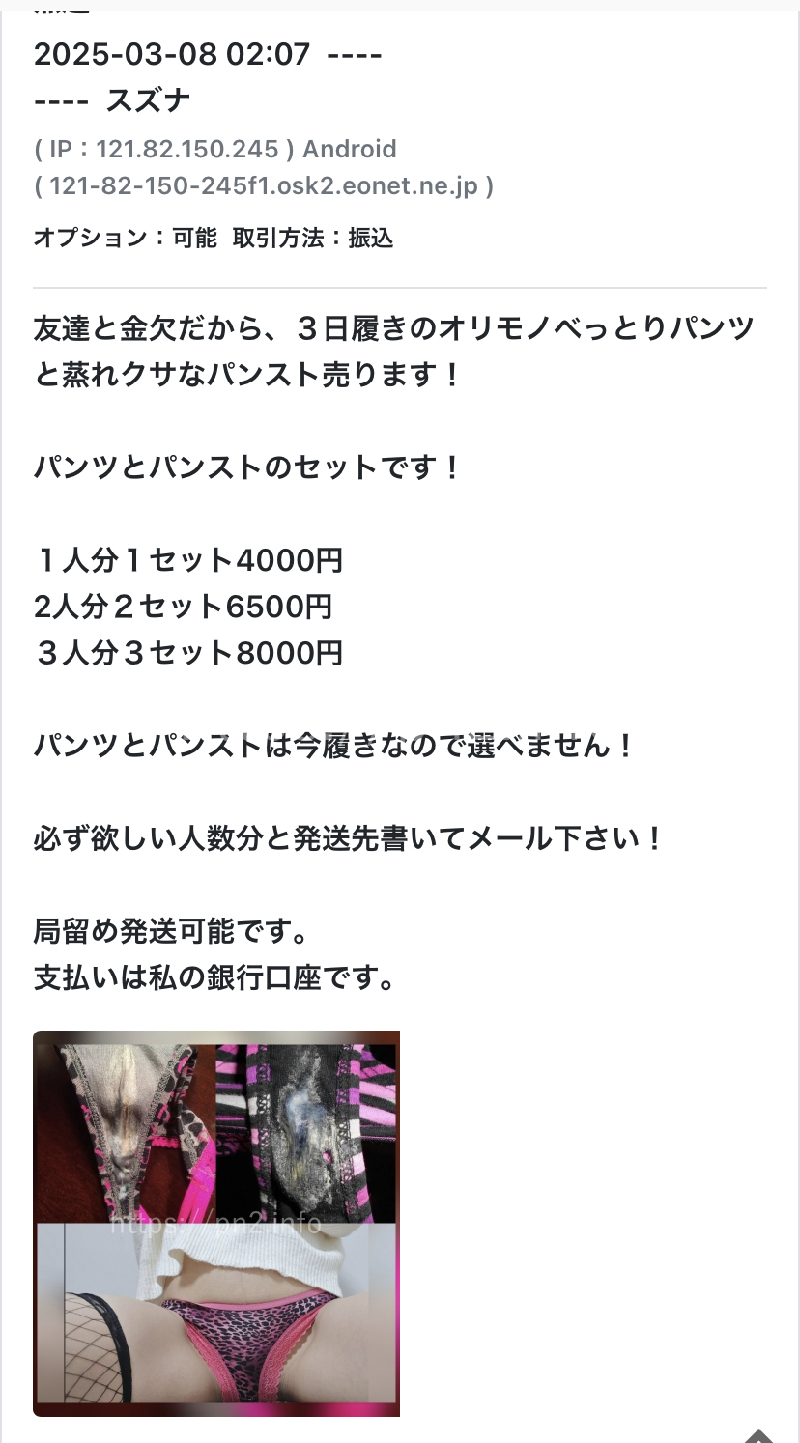 話し早い方は3枚の内、1枚ノーパンでオナして発送します!